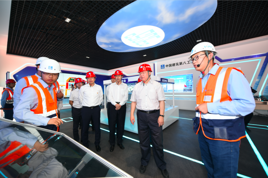 在中国科学技术大学高新园区(一期)项目,郑学选一行深入项目施工现场及智慧工地展厅,了解工程建设及项目党支部主题教育开展情况。他表示,项目要开门做主题教育,深度研究联创共建的作用。
